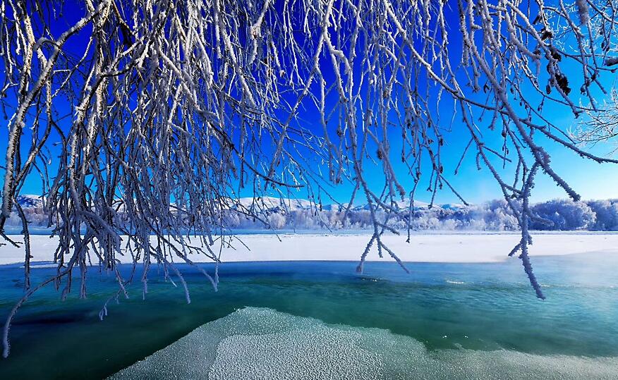 河畔雾凇绵延。
