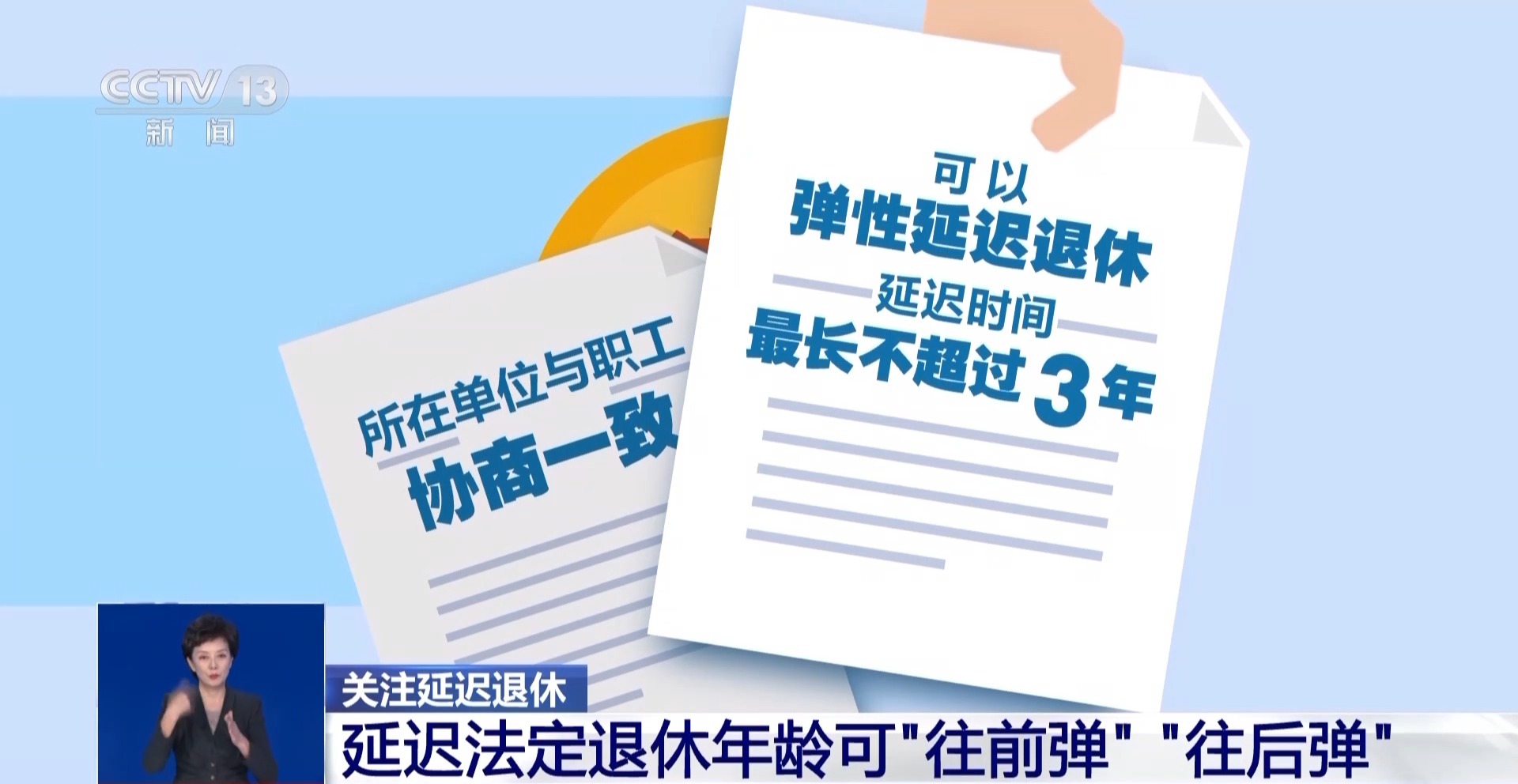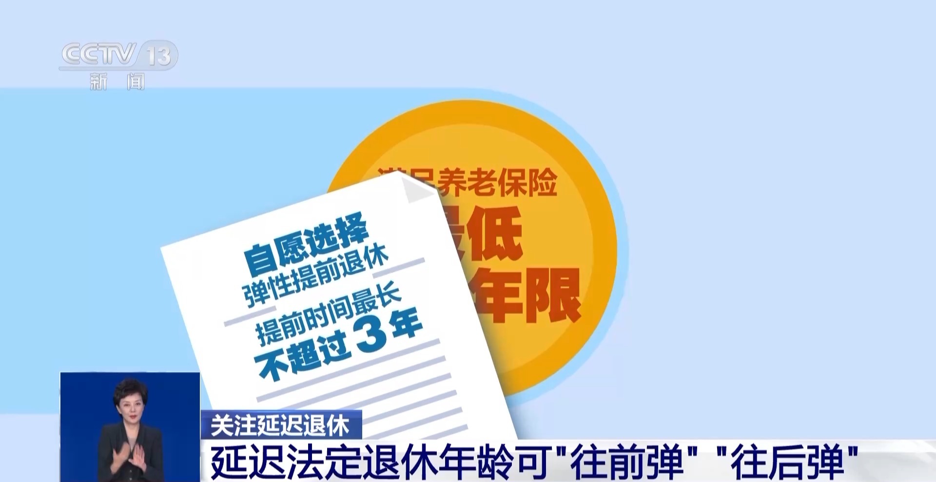 13日,第十四届全国人民代表大会常务委员会第十一次会议通过《关于实施渐进式延迟法定退休年龄的决定》。《决定》明确,改革坚持“自愿、弹性”原则,明确了延迟法定退休年龄“往前弹”“往后弹”两种情况。我们来具体了解一下。