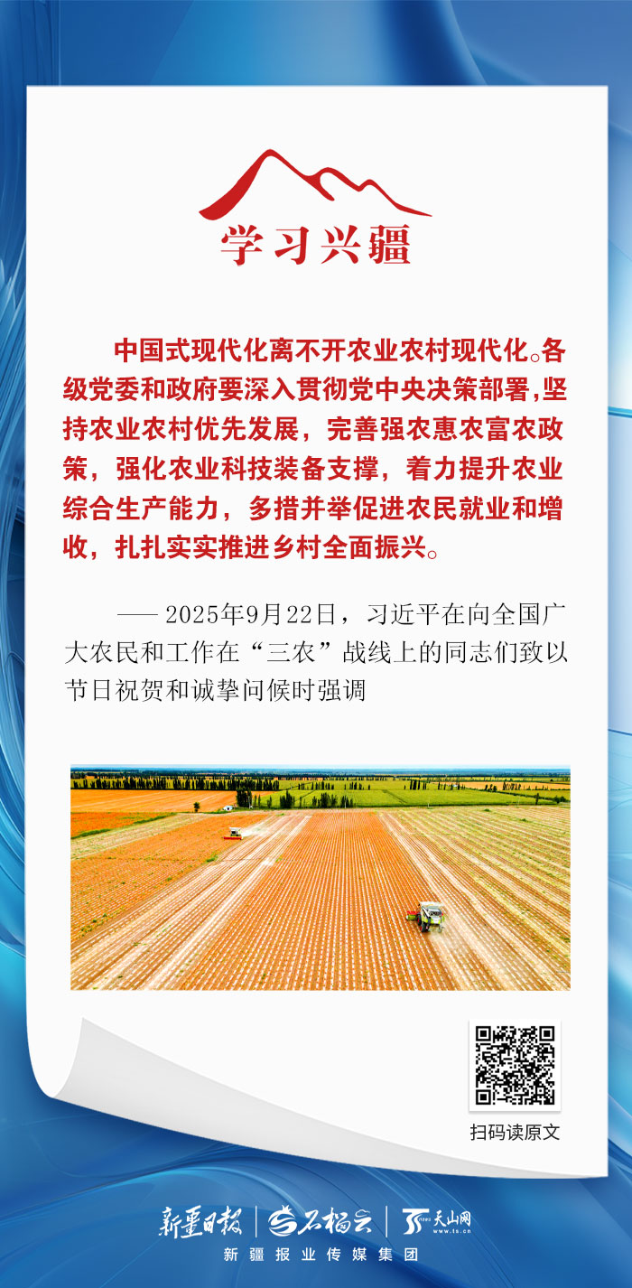 ——2025年9月22日,习近平在向全国广大农民和工作在“三农”战线上的同志们致以节日祝贺和诚挚问候时强调