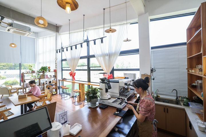 2025年8月27日在浙江省湖州市长兴县虹星桥镇宋高村稻香伴日营地内拍摄的咖啡屋。这是宋高村做优全域土地整治后的农文旅新尝试,集餐饮、旅游、农业和文化于一体。新华社记者 徐昱 摄