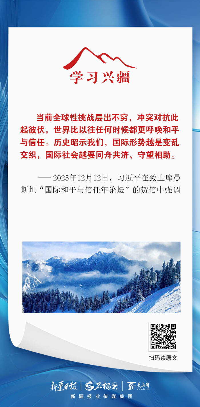 ——2025年12月12日,习近平在致土库曼斯坦“国际和平与信任年论坛”的贺信中强调