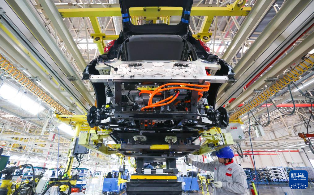 2025年12月30日,在河南省商丘市豫商经济技术开发区现代装备制造产业基地的一家新能源汽车企业,工人在组装车间工作。新华社发(李恒 摄)