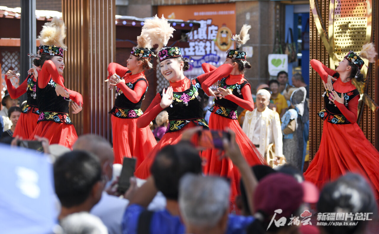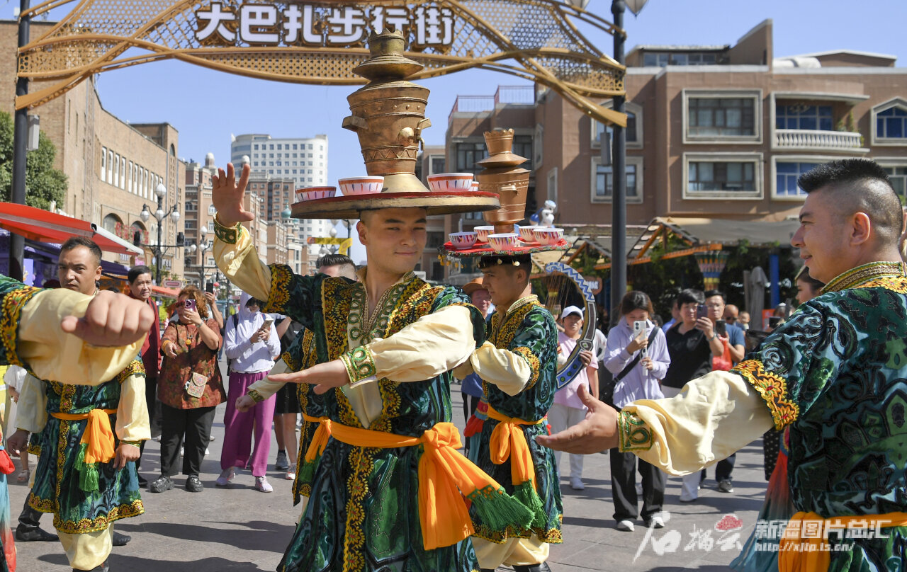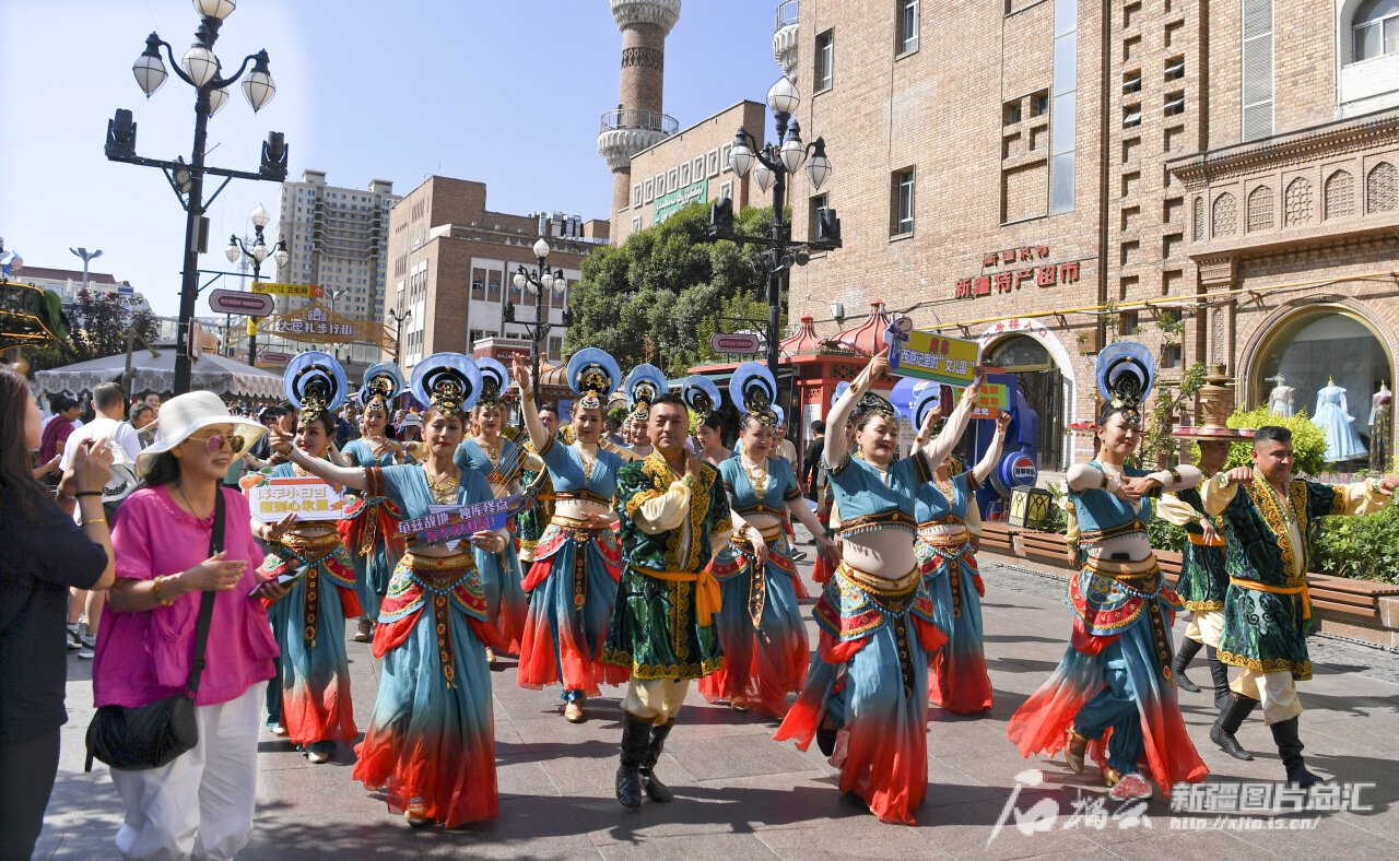 天山网-新疆日报讯(记者汤永摄影报道)8月22日,首届中国新疆民间艺术季核心活动——民间艺术演员巡游演出在乌鲁木齐大巴扎步行街精彩上演,吸引了众多游客和市民。民间艺术季期间,来自全国各地的民间艺术团队纷纷来到乌鲁木齐街头、景区、广场、公园等地进行表演,将全国各地丰富多彩的民间艺术展示给市民和游客。