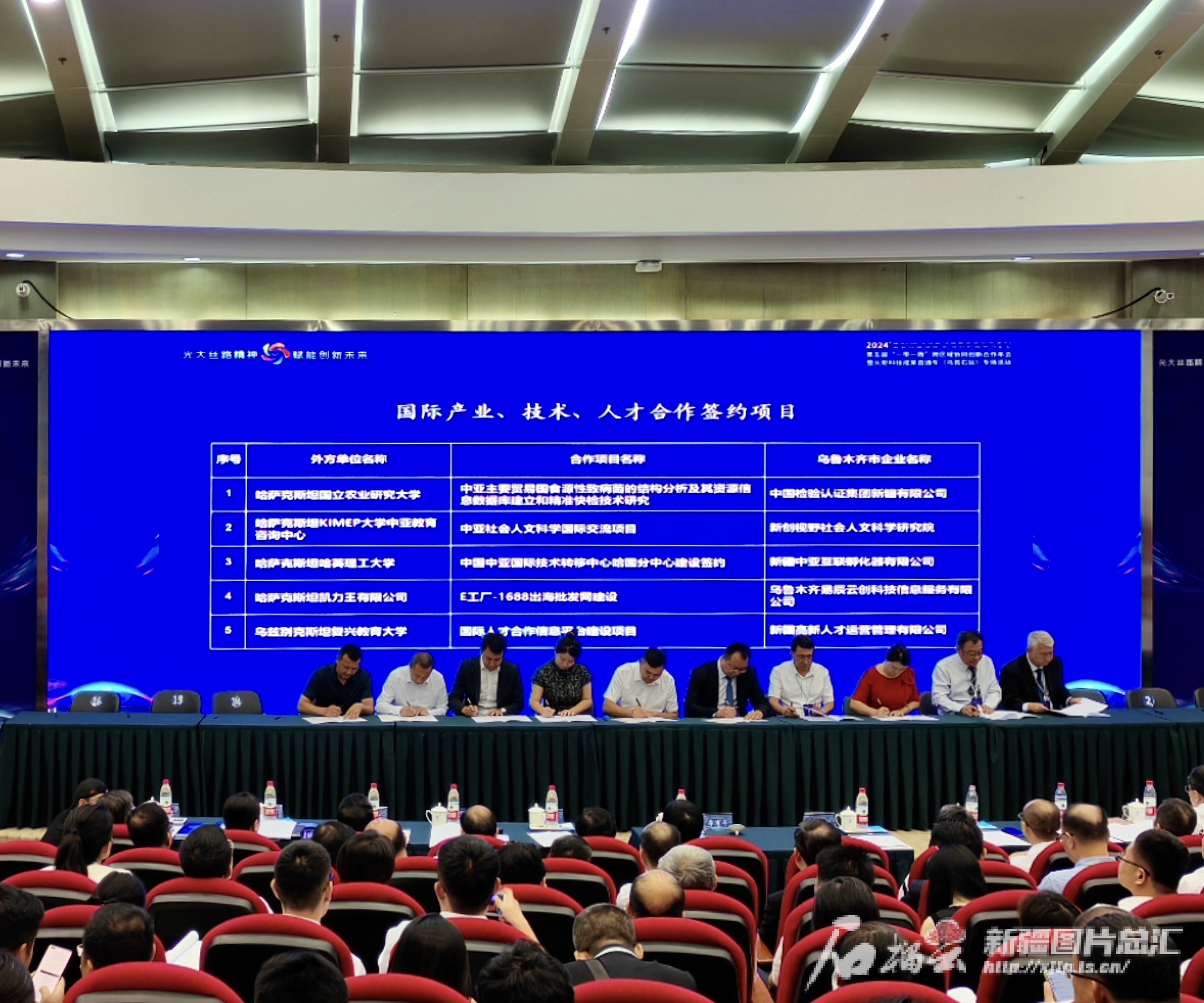 年会现场,乌鲁木齐市域内企业、高校、科研机构与中亚国家及国内28个合作城市科技创新机构、联盟、企业之间签订了产业、技术、人才等方面的合作协议71项,签约金额共计6.7亿元。