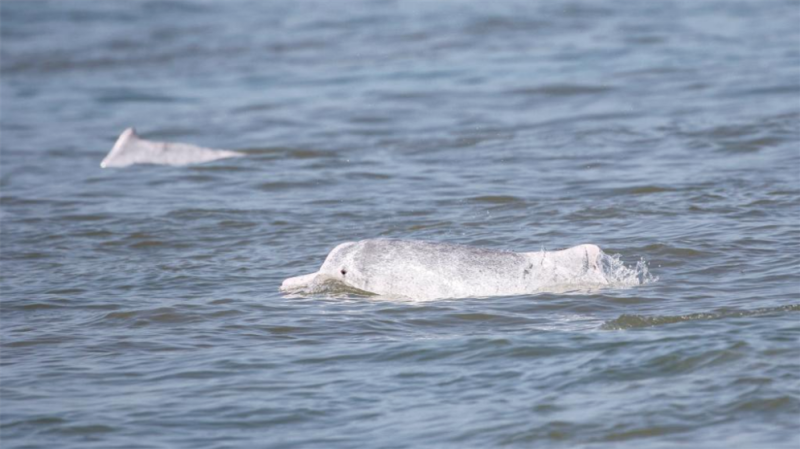 科研人员在海南岛西南海域目击到大量中华白海豚