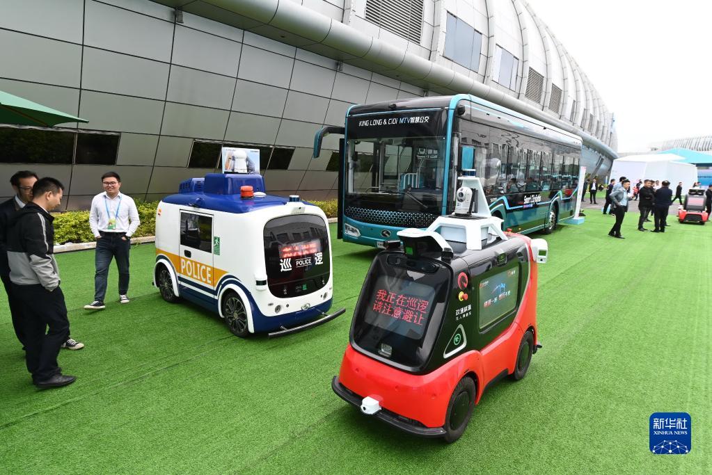 4月26日在第六届数字中国建设成果展览会上拍摄的多种智慧车辆。新华社记者 林善传 摄