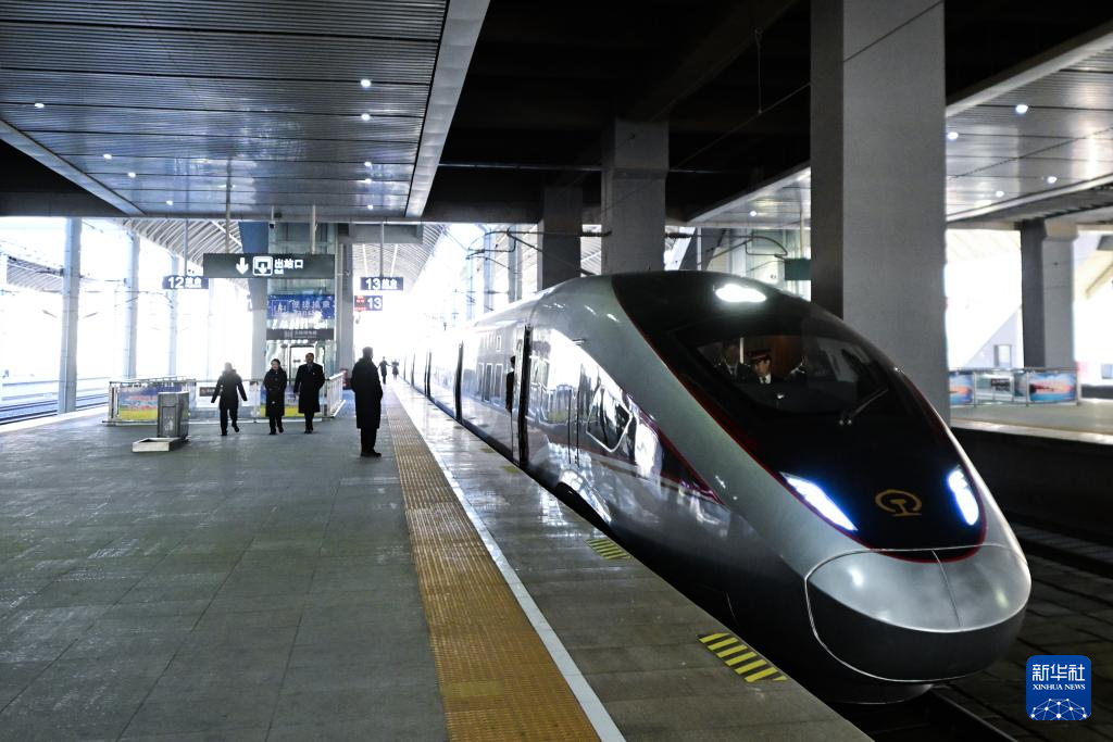 1月11日,复兴号智能动车组列车驶入西宁站。新华社记者 张龙 摄