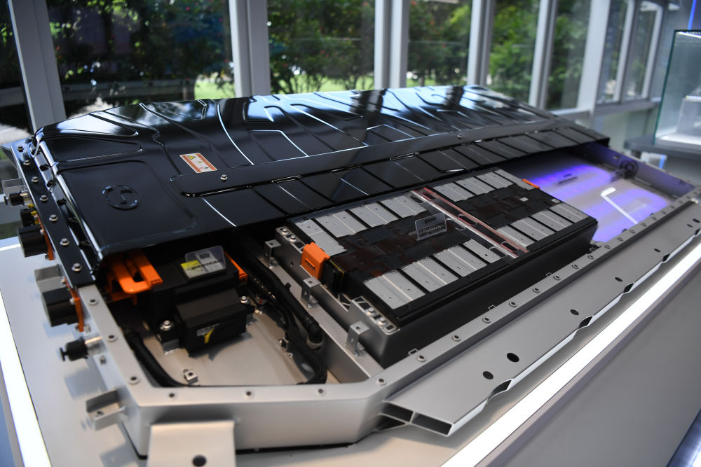 这是2023年7月3日拍摄的广汽埃安展示的电池系统。新华社记者 邓华 摄