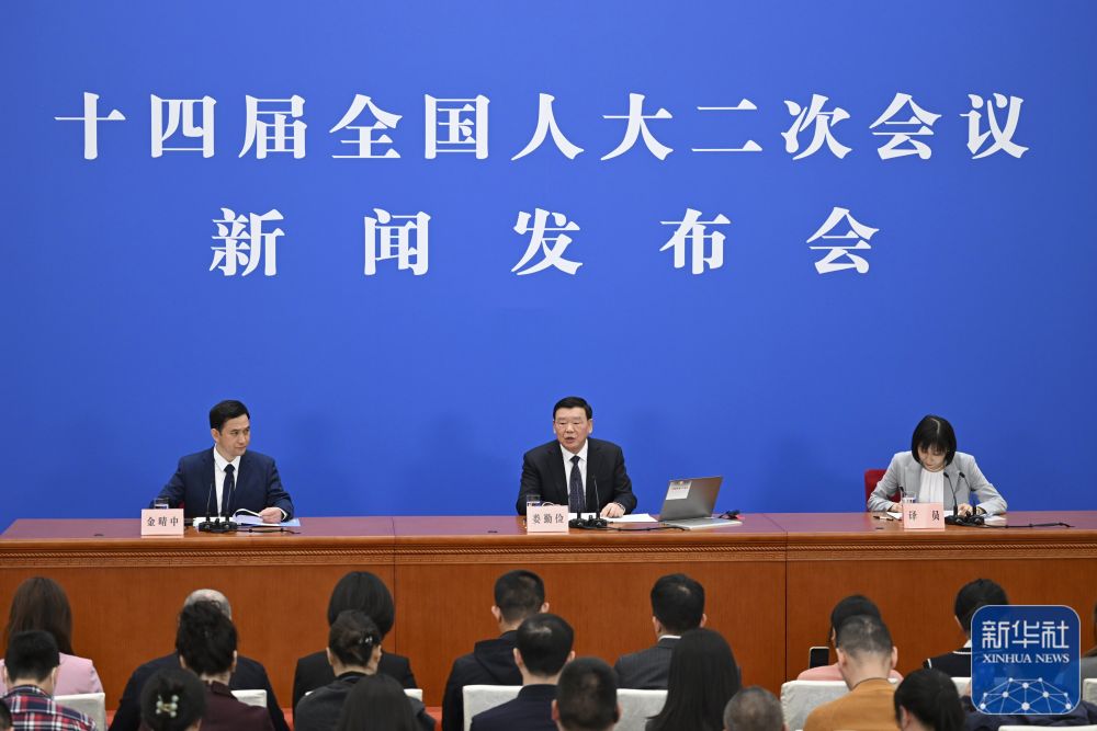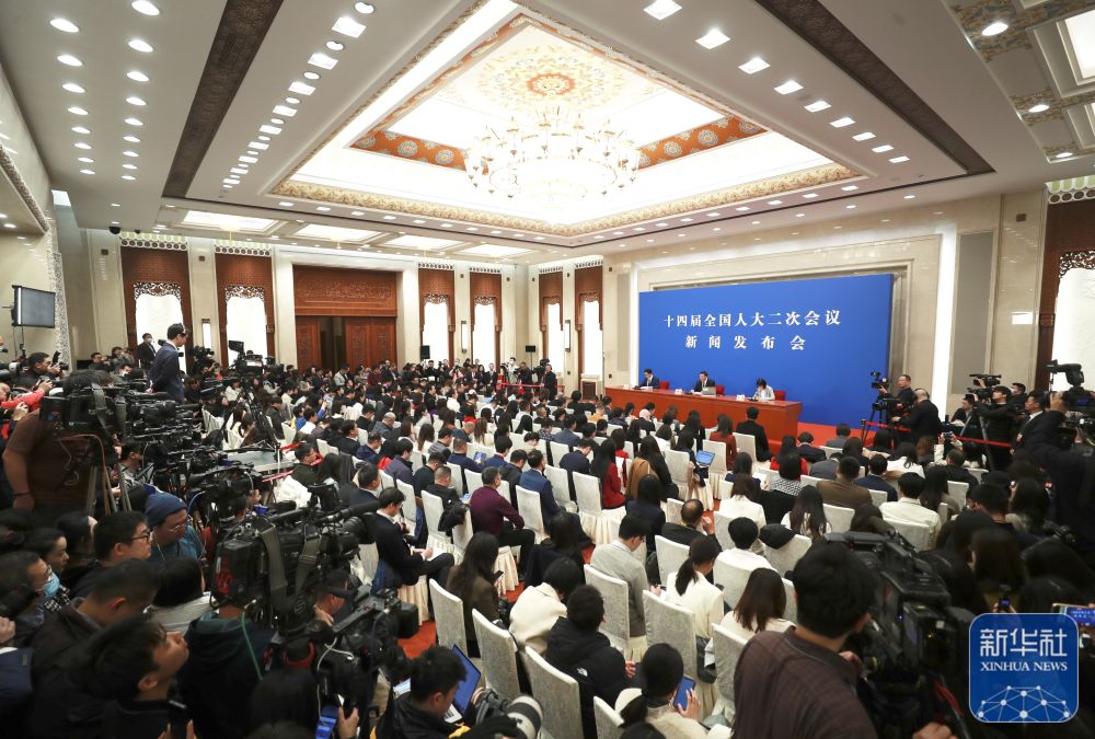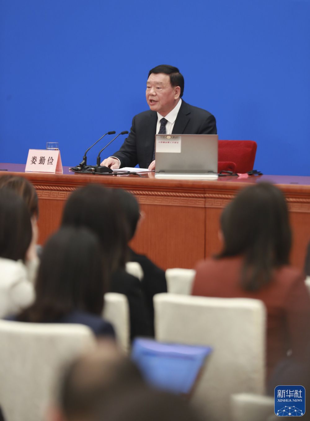 3月4日,十四届全国人大二次会议在北京人民大会堂举行新闻发布会。大会发言人娄勤俭就大会议程和人大工作相关问题回答中外记者的提问。