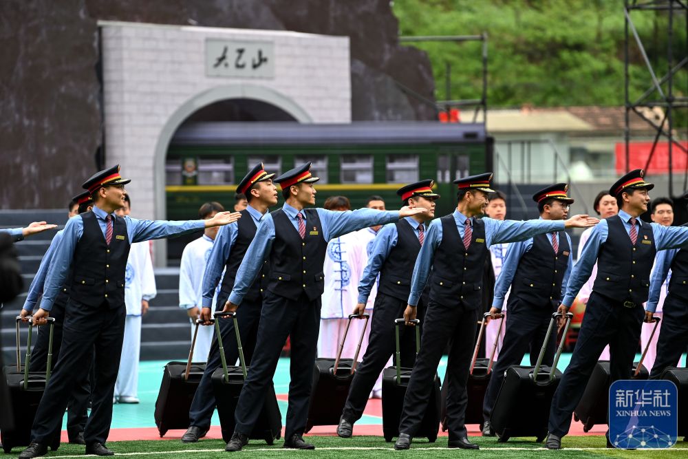 ↑铁路职工在开幕式上表演。新华社记者 邹竞一 摄