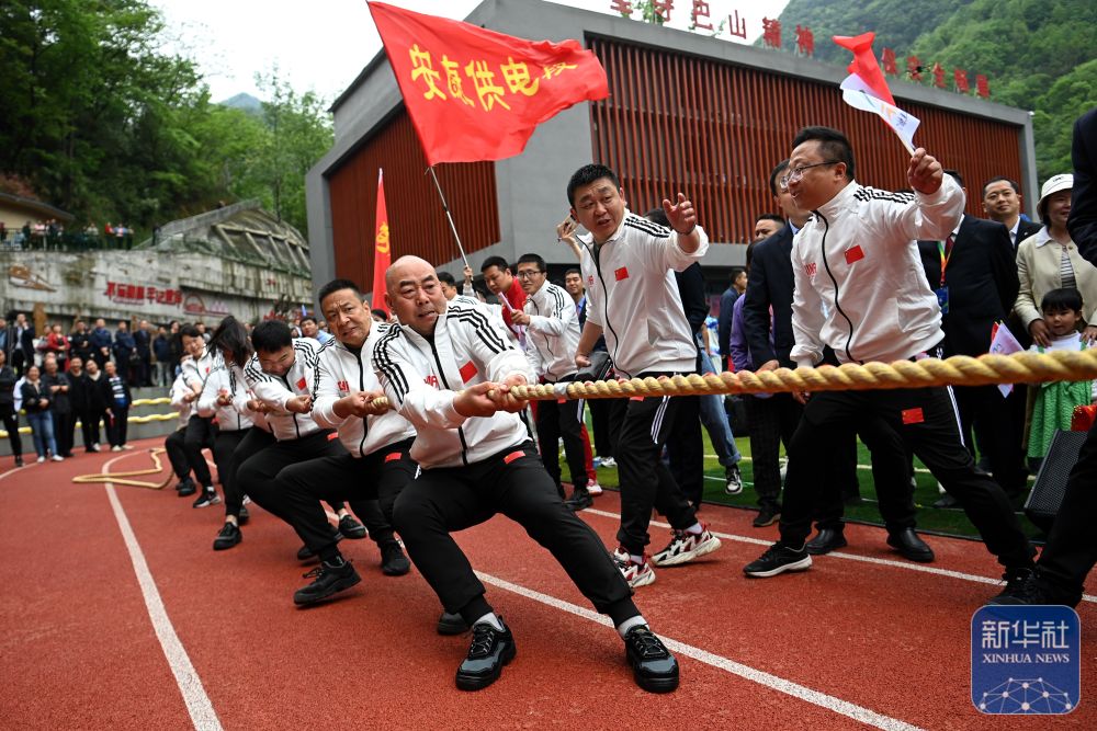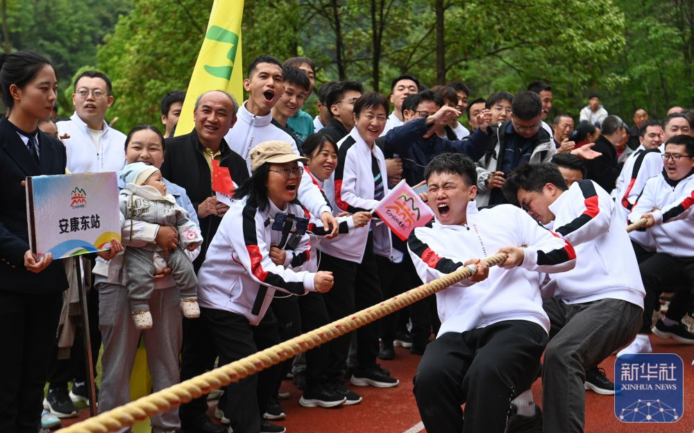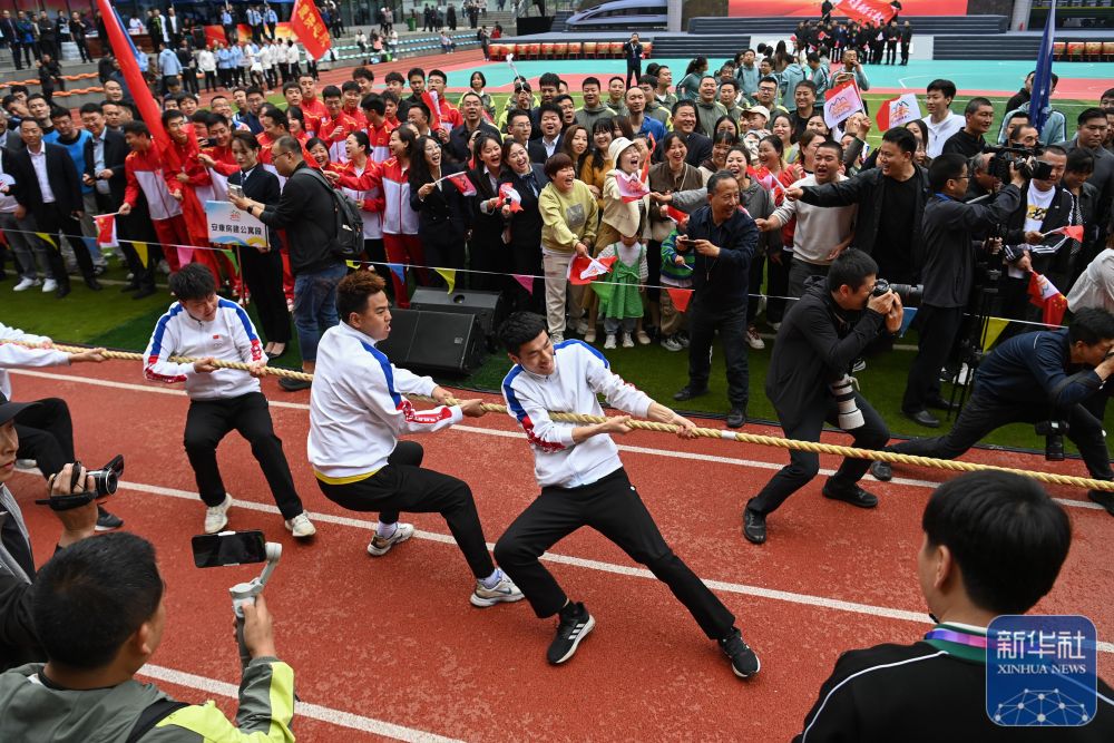 ↑参赛选手在运动会上参加拔河比赛。新华社记者 邹竞一 摄