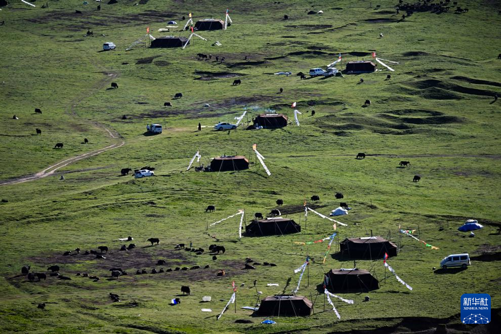 这是7月31日在青海省果洛藏族自治州达日县吉迈镇普忙村拍摄的牧民的夏季草场。新华社记者 张龙 摄