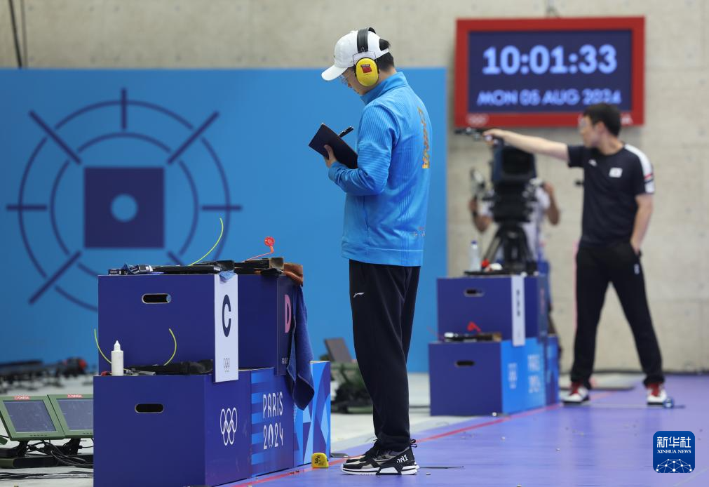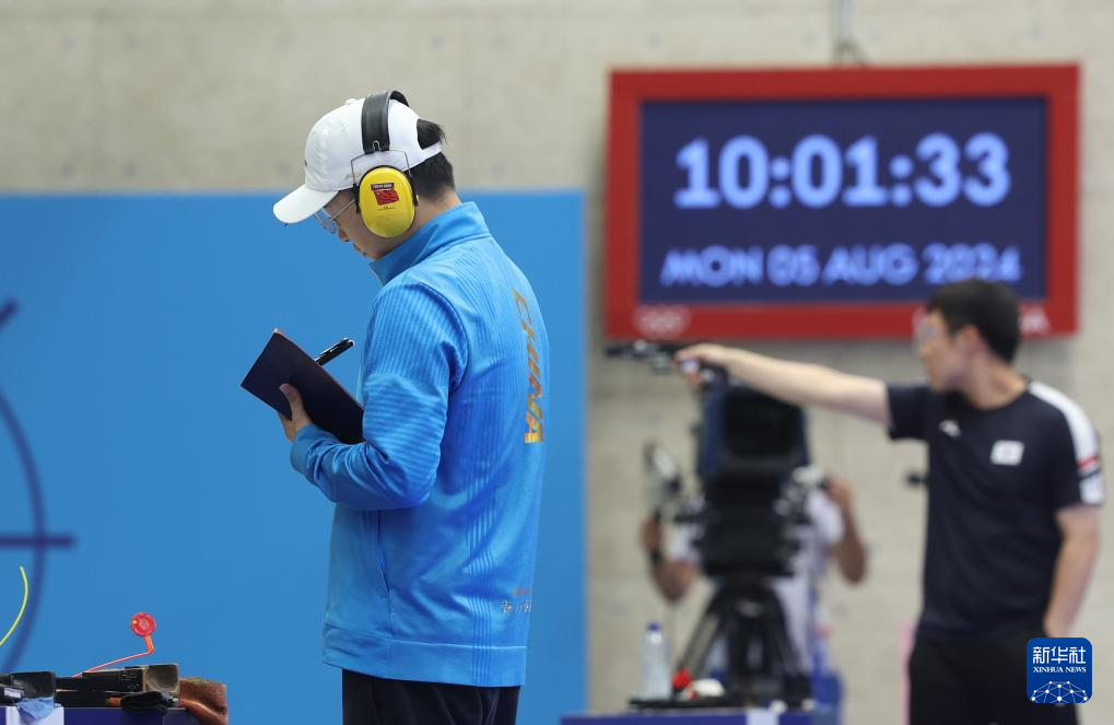 8月5日,中国选手李越宏在比赛中记录。新华社记者 赵丁喆 摄