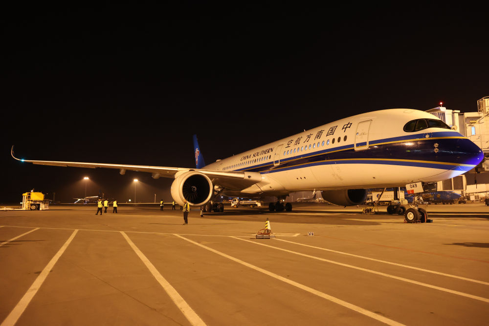 2024年4月24日晚,南航沈阳-法兰克福CZ8021首航航班在沈阳桃仙国际机场准备起飞。这是国内航司在东北地区开通的首条直飞德国定期航线。