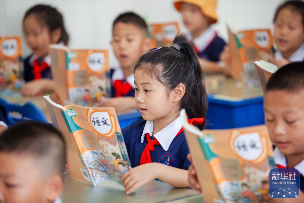↑9月2日,山东省淄博市高青县中心路小学的学生在课堂上读书。新华社发(张维堂摄)