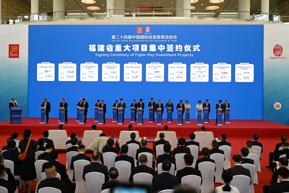 这是在第二十四届中国国际投资贸易洽谈会现场举行的福建省重大项目集中签约仪式现场(9月8日摄)。