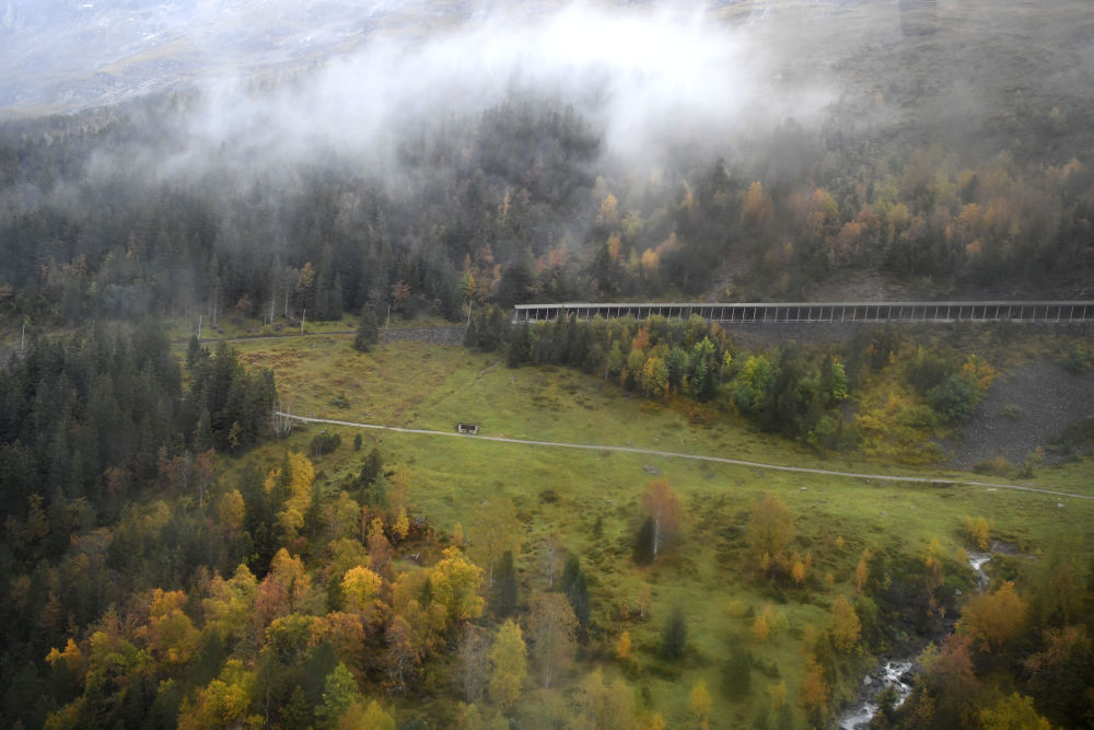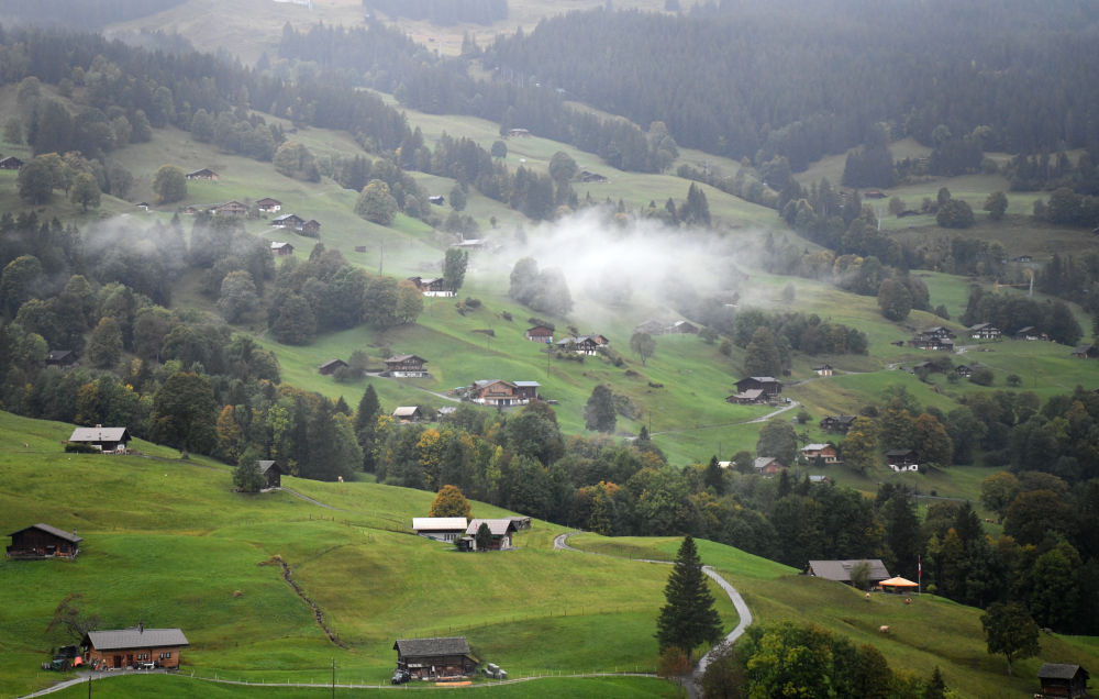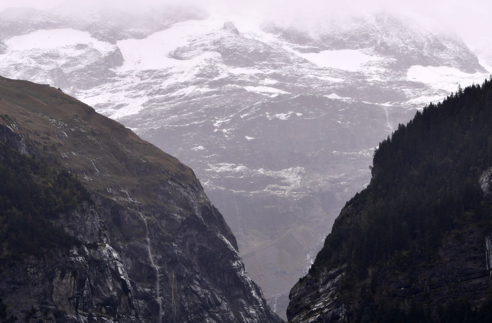 10月1日,瑞士少女峰地区被浓浓的水汽笼罩。层层迷雾缭绕山间,勾勒出一幅秋雨润山的自然画卷↓