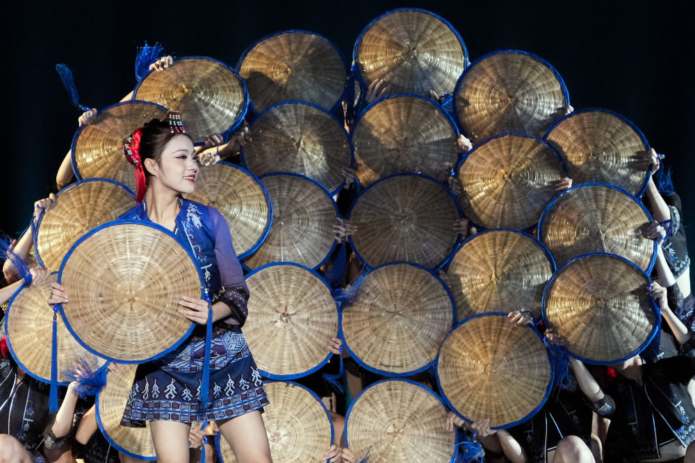 ↑演员欢迎广西代表团成员参加活动。新华社记者 孙凡越 摄