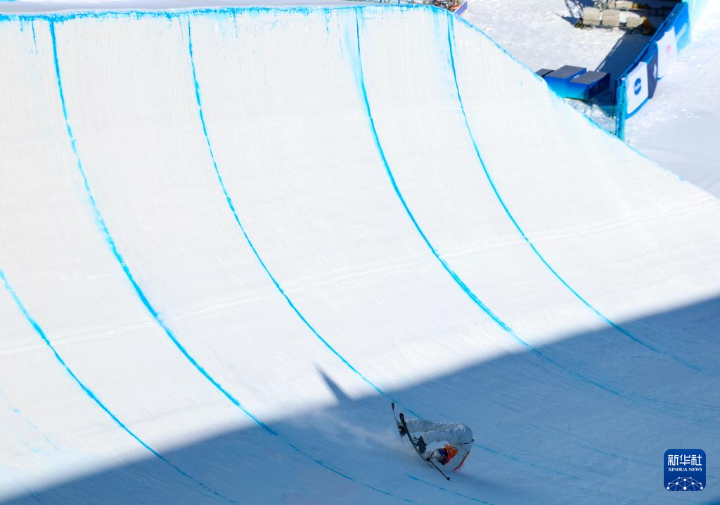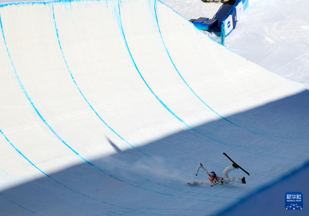 12月7日,谷爱凌在决赛第一跳时摔倒。新华社记者 雒圆 摄
