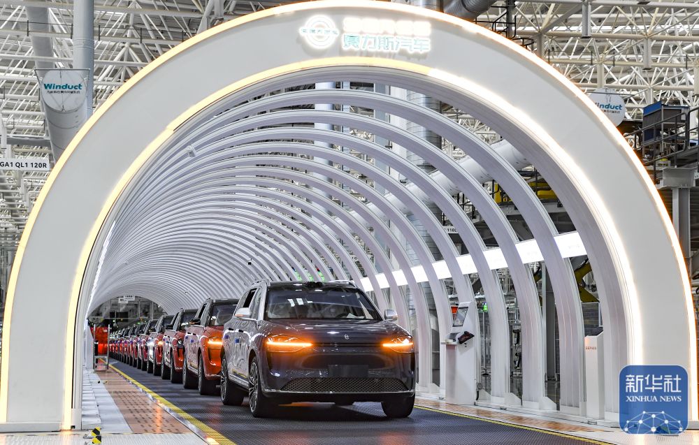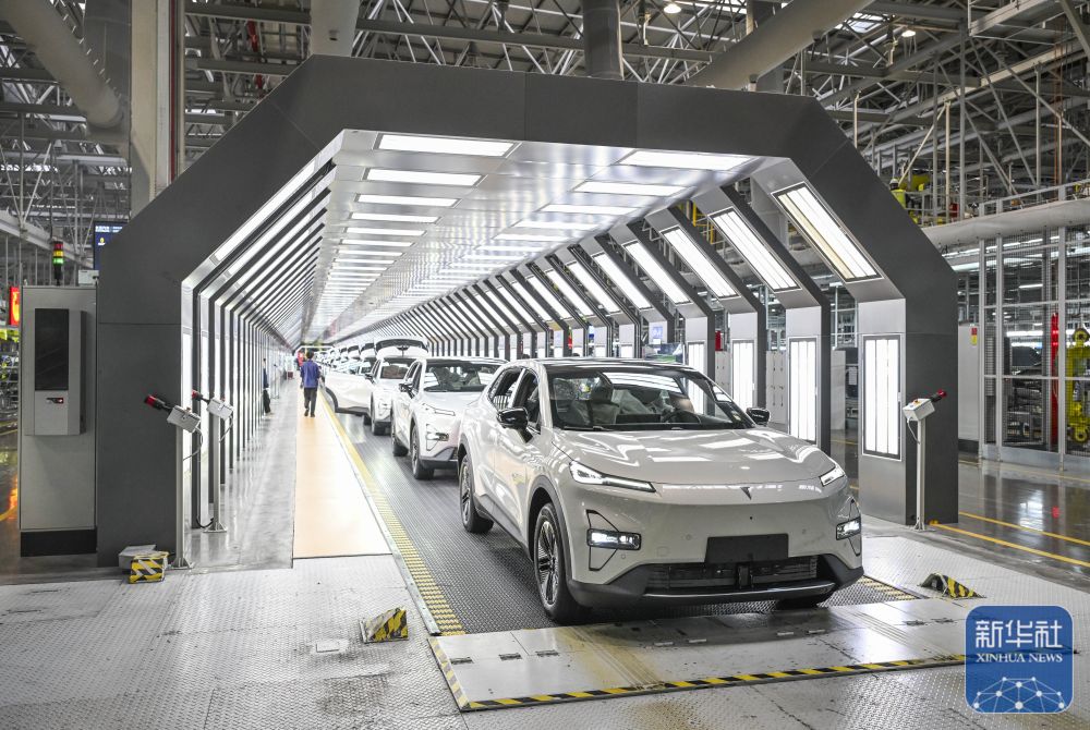 2025年1月9日在位于重庆市渝北区的长安汽车数智工厂总装车间拍摄的即将下线的新能源汽车。新华社记者 王全超 摄