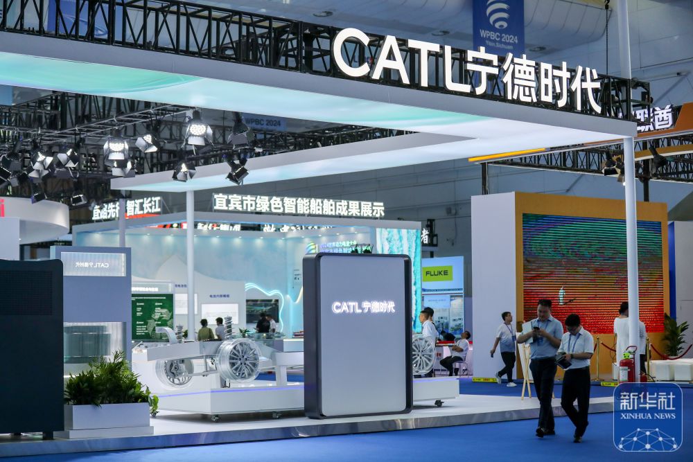 在宜宾国际会展中心拍摄的世界动力电池产业链供应链成果展示活动现场(2024年8月31日摄)。四川省宜宾市是成渝地区双城经济圈的重要组成部分之一。新华社发(庄歌尔 摄)