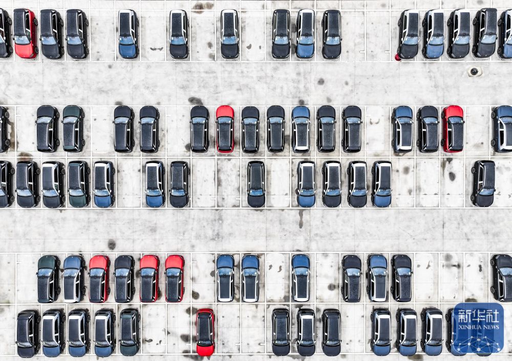 2024年11月6日在位于重庆市两江新区的赛力斯超级工厂拍摄的新能源汽车(无人机照片)。新华社记者 王全超 摄