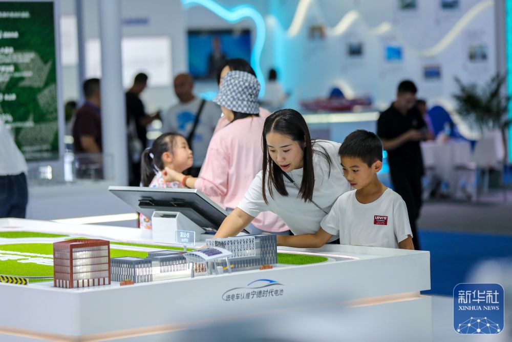 在宜宾国际会展中心举行的世界动力电池产业链供应链成果展示活动上,市民参观了解动力电池的运用场景(2024年8月31日摄)。四川省宜宾市是成渝地区双城经济圈的重要组成部分之一。新华社发(庄歌尔摄)