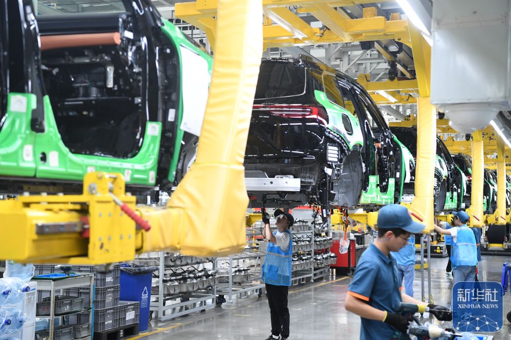 这是在位于重庆的赛力斯汽车凤凰智慧工厂拍摄的新能源汽车生产线(2024年8月14日摄)。新华社记者 王全超 摄