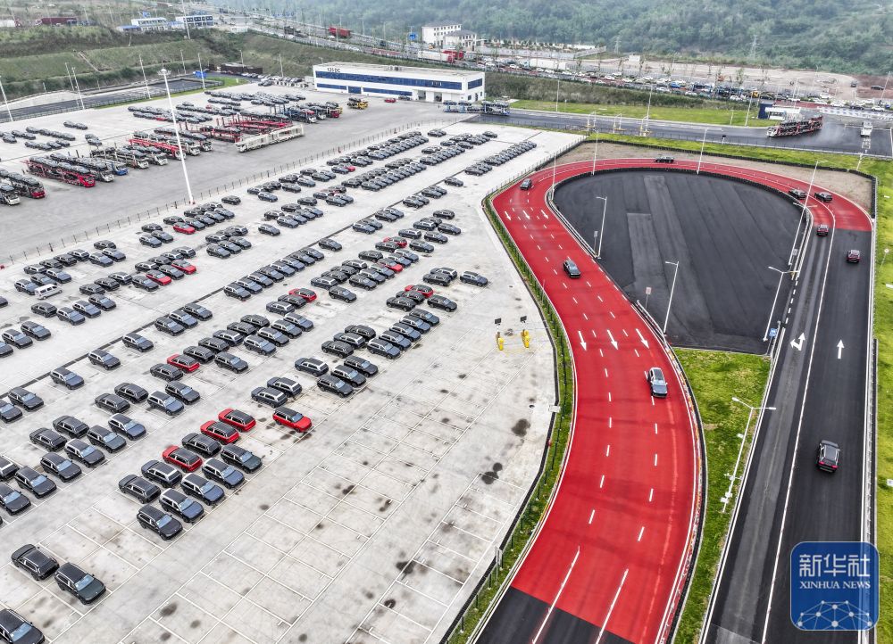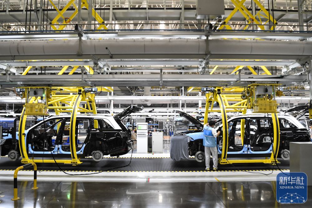 这是在位于重庆市两江新区的赛力斯汽车超级工厂拍摄的即将下线的新能源汽车(2024年6月7日摄)。新华社记者 王全超 摄
