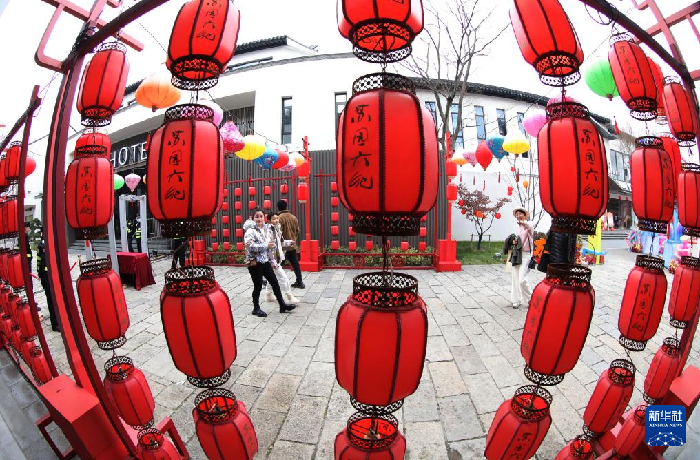 1月23日,游客在江苏苏州桃花坞唐寅故居文化区游玩。新华社发(杭兴微摄)