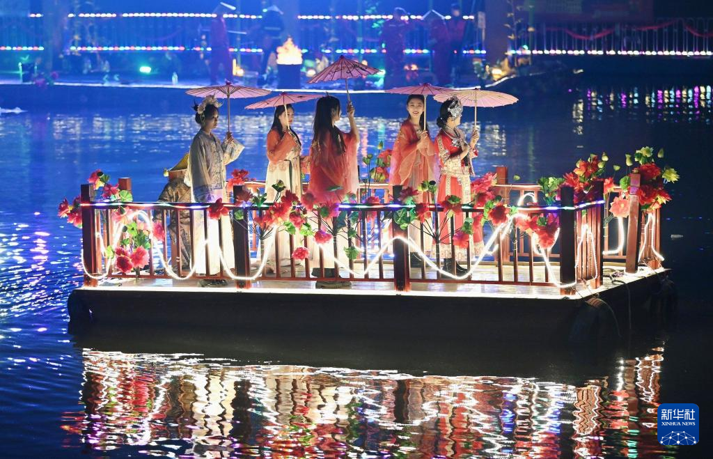 1月22日,演员在山东省滕州市西岗镇九龙湾湿地公园表演花船巡游。新华社发(李志军摄)