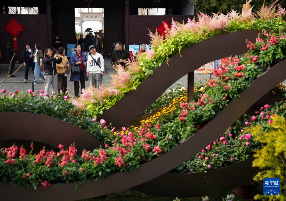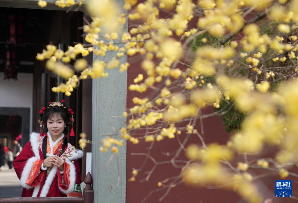 1月23日,人们在杭州钱王祠内观看西湖迎春花展。新华社记者 韩传号 摄