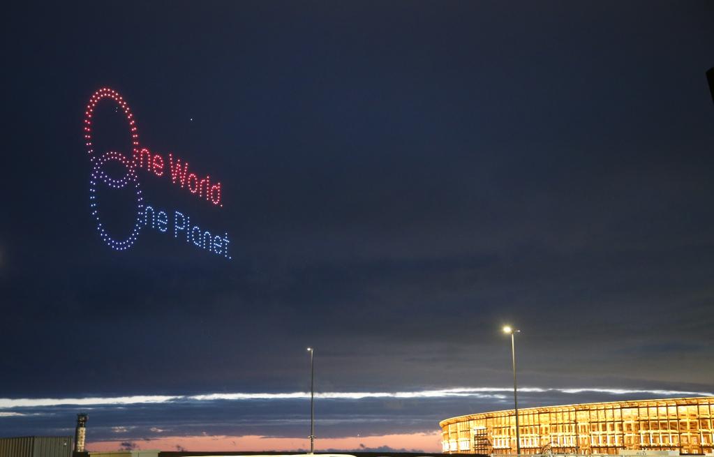 这是4月13日在日本大阪拍摄的无人机表演