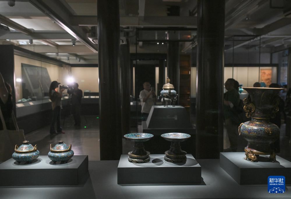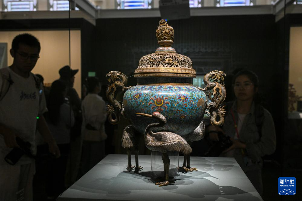 这是展出的清代掐丝珐琅鹤足炉(5月19日摄)。新华社记者 金良快 摄