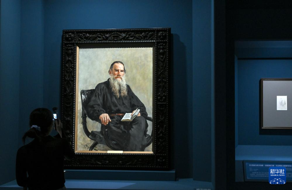 7月22日,记者拍摄列宾画作《列夫·托尔斯泰肖像》。新华社记者 金良快 摄