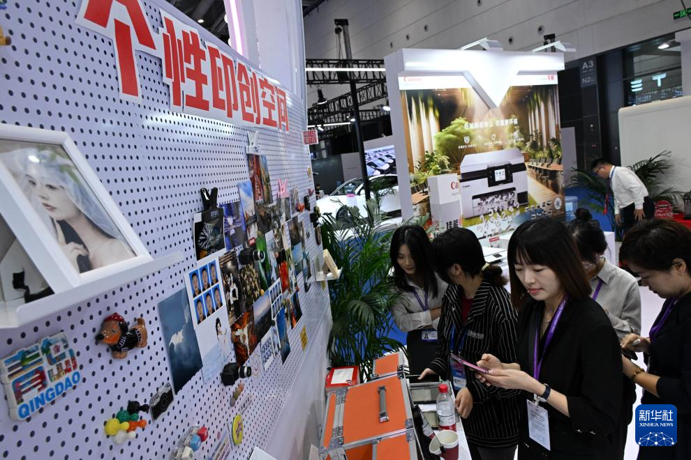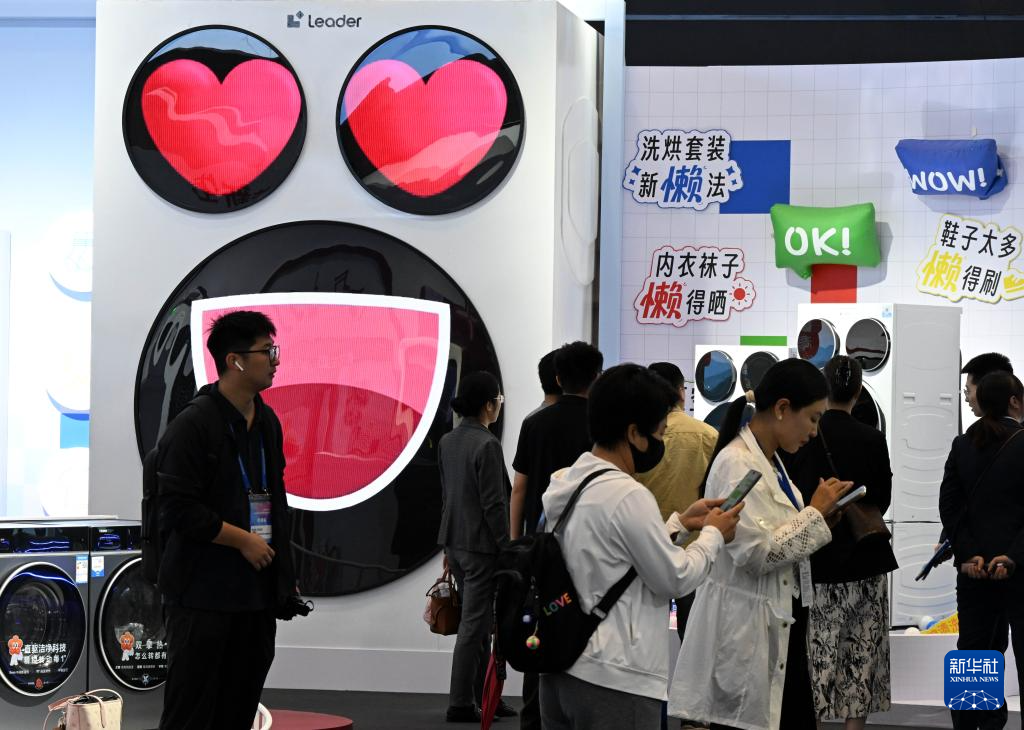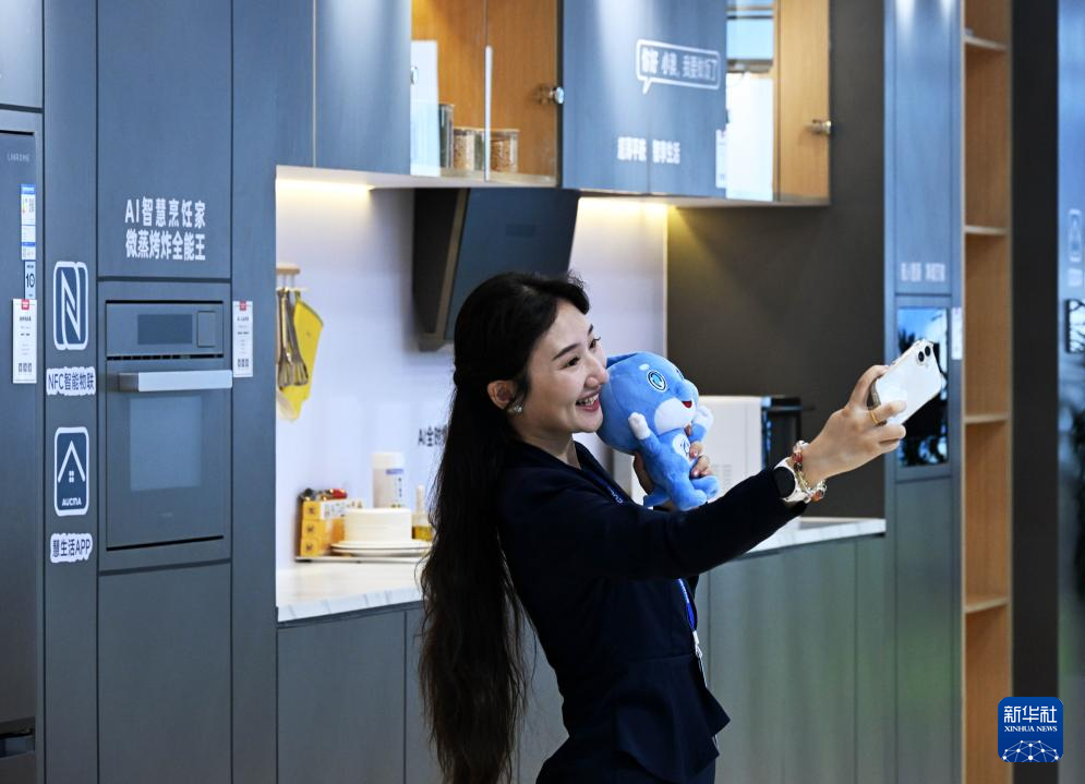 9月19日,参观者在2025中国国际消费电子博览会智慧厨房展区参观时自拍。新华社记者 李紫恒 摄