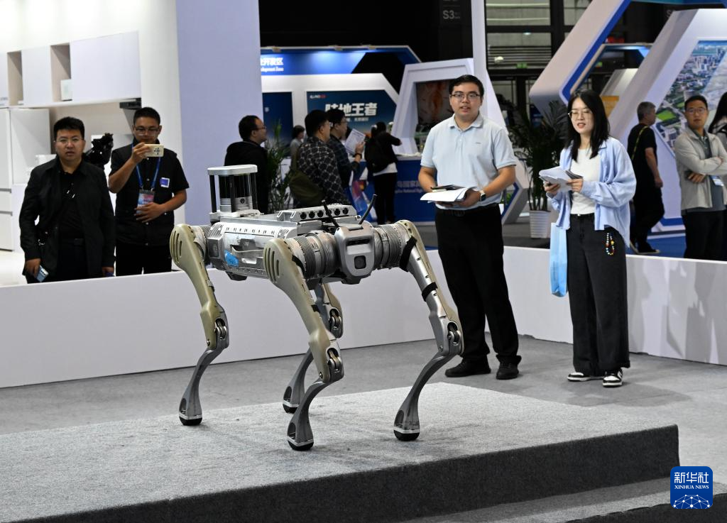 9月19日,人们在2025中国国际消费电子博览会上观看机器狗演示。新华社记者 李紫恒 摄