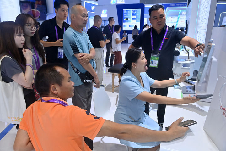 2025年9月19日,在广西南宁国际会展中心,参观者在体验人工智能看病。新华社记者 陆波岸 摄