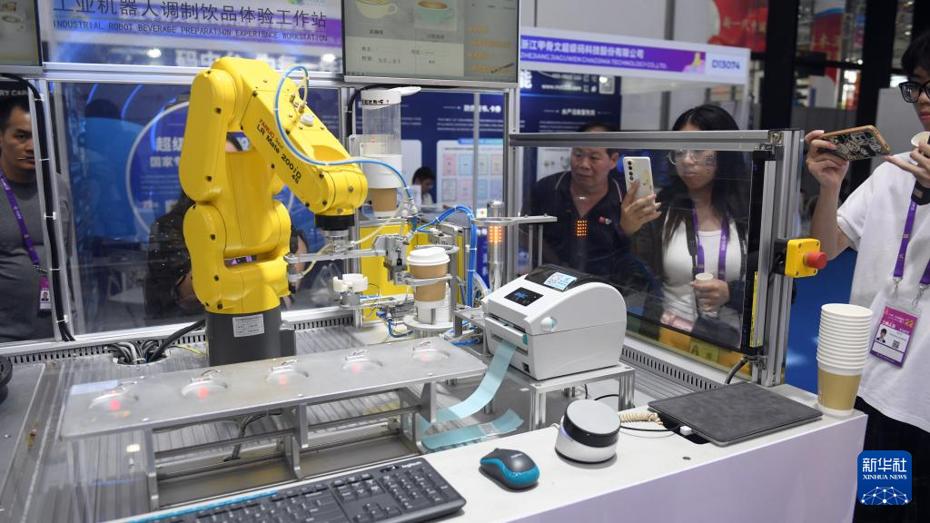 9月19日,在南宁国际会展中心,机器人演示调制饮品。新华社记者 张爱林 摄