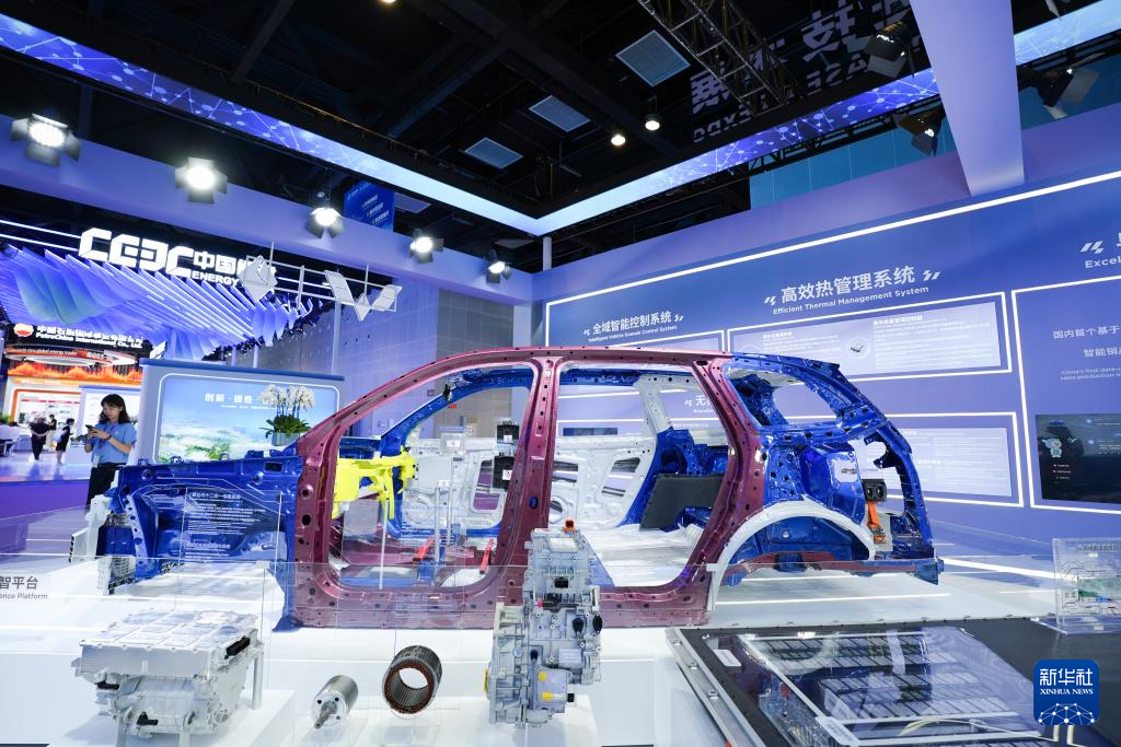 9月19日在南宁国际会展中心拍摄的电动新能源汽车展台。新华社记者 周汀鹭 摄