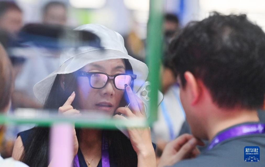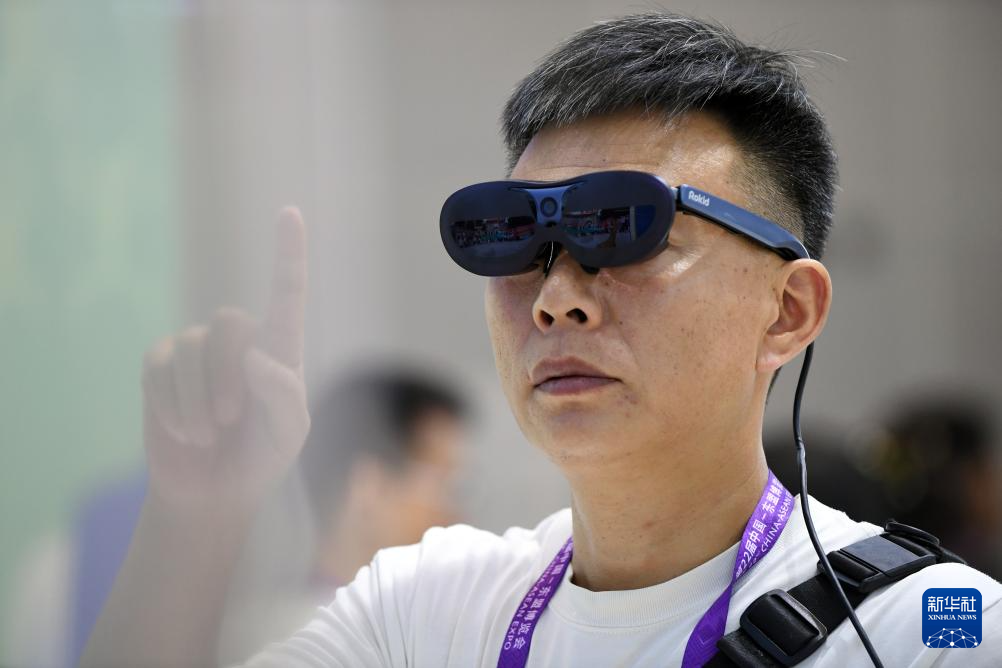 9月18日,在南宁国际会展中心,参观者体验一款AR眼镜。新华社记者 陆波岸 摄