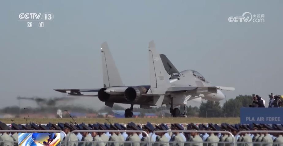 空军航空兵某部 杨浩鹏:空中加油与加油机编队通场,相当于把我们平时的训练搬到了现场。通过空中加油来增大歼-16的续航能力和作战半径。