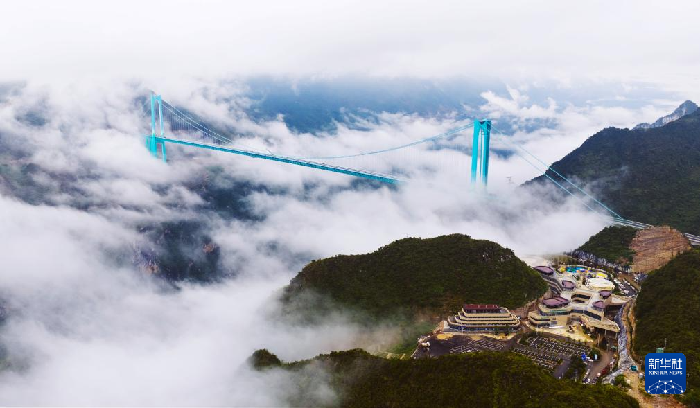 乘坐一秒升高4米的观光电梯登上桥塔,在距离江面800多米的高空喝咖啡;来到桥体中部一千多平方米的玻璃大厅,站在透明地板上直视峡谷底部;在桥体两侧,体验600多米的高空竞速跑道与无绳蹦极;夜晚躺在云渡服务区的酒店内,欣赏300米宽的水幕灯光秀……奇观、奇幻、奇趣在这里充分展现。