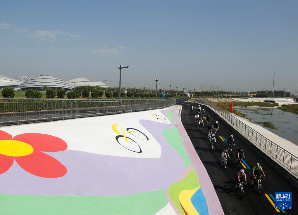 9月30日,在河北省邢台市高新区举行的骑行迎国庆活动中,骑行爱好者在祝村镇牛尾河畔骑行。新华社发(张驰摄)