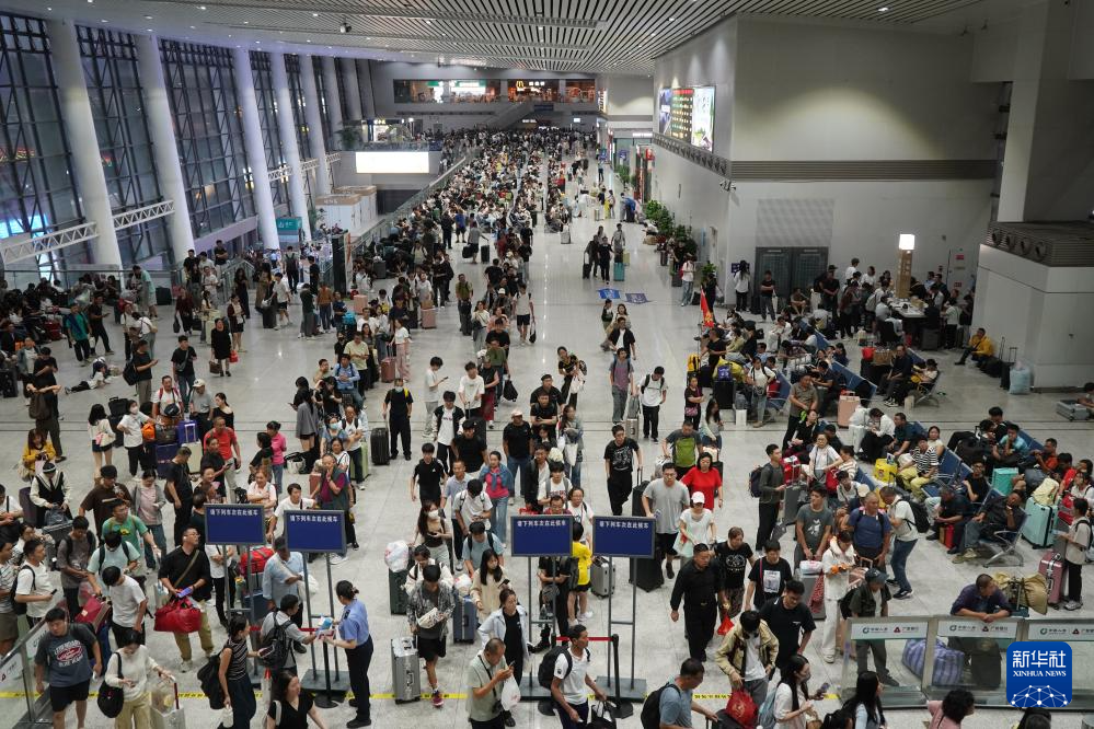 10月8日,旅客在贵阳北站有序出站。新华社发(张维摄)