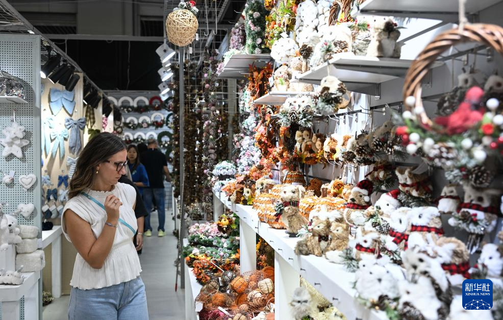 10月23日,境外采购商观看装饰品展台。新华社记者 邓华 摄