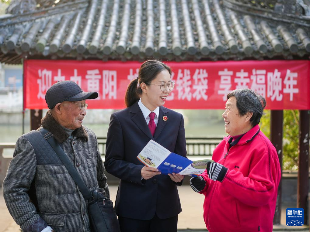 10月27日,江苏省兴化市人民检察院法治宣讲团的工作人员在公园为老年人讲解有关养老法律知识。新华社发(周社根摄)