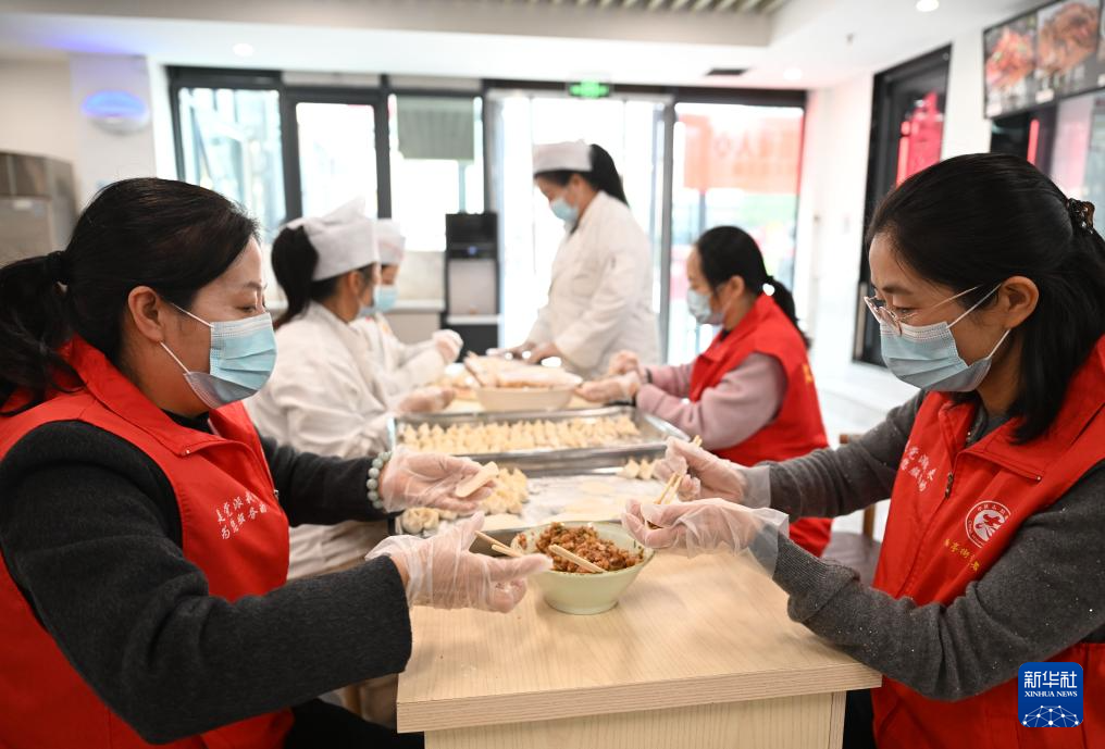 10月29日,志愿者在河北省承德市高新技术产业开发区滨河社区和老人一起包饺子。 新华社发(刘满仓摄)