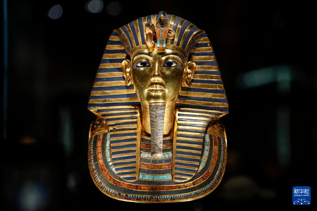 这是11月4日在埃及吉萨的大埃及博物馆法老图坦卡蒙展馆拍摄的法老的黄金面具。新华社发(艾哈迈德·戈马摄)
