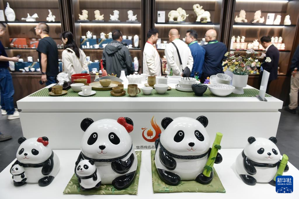 11月6日,观众在第八届进博会人文交流展区的福建德化白瓷展厅参观。新华社记者 鲁鹏 摄